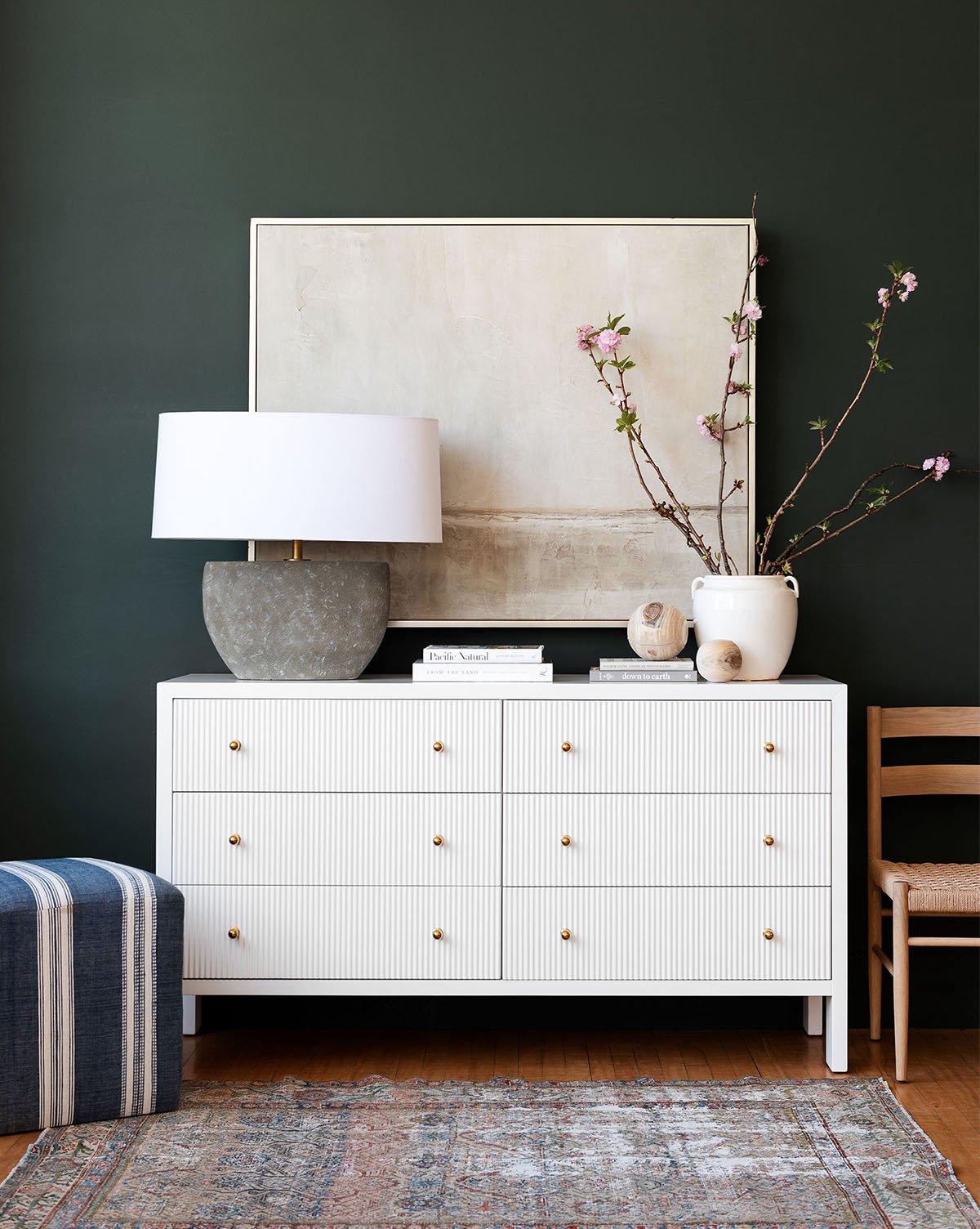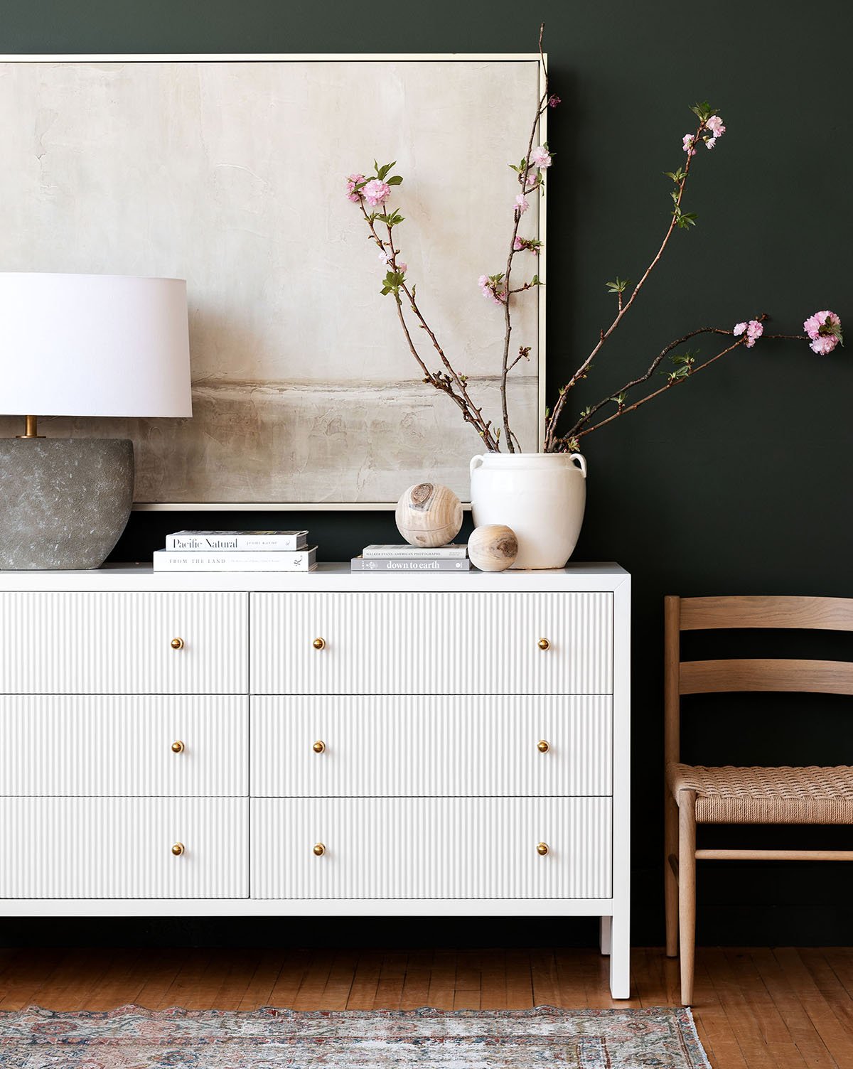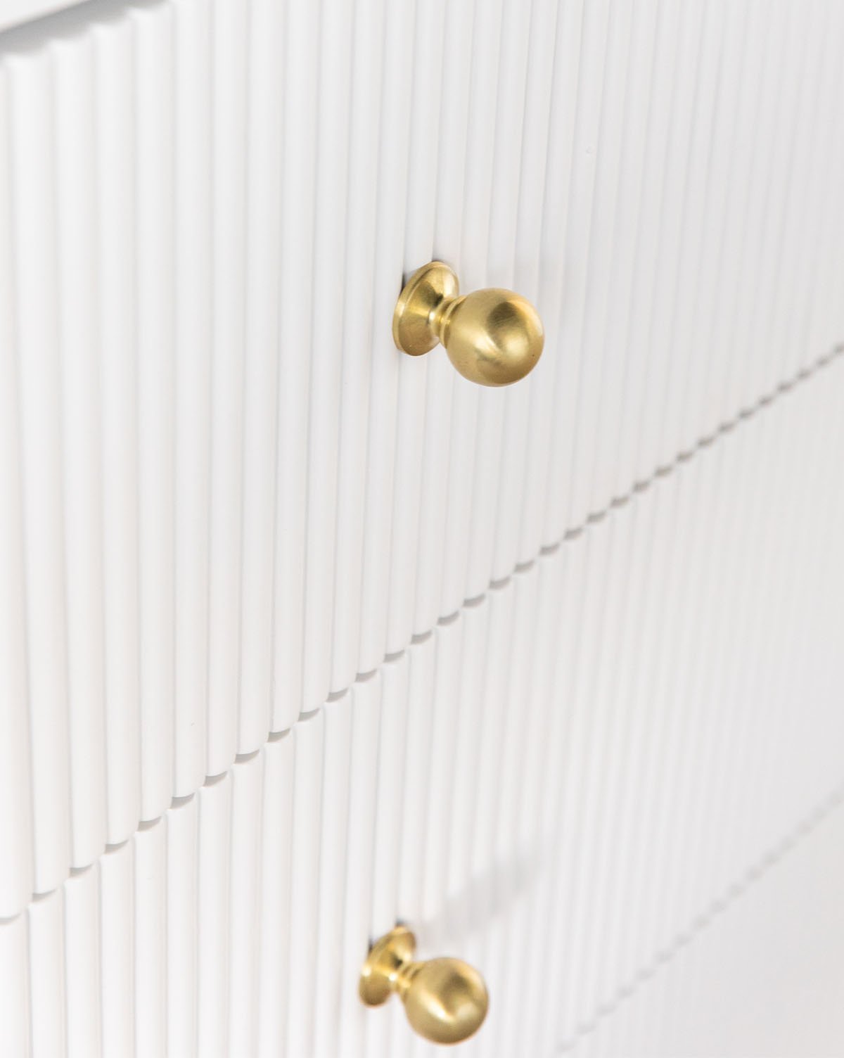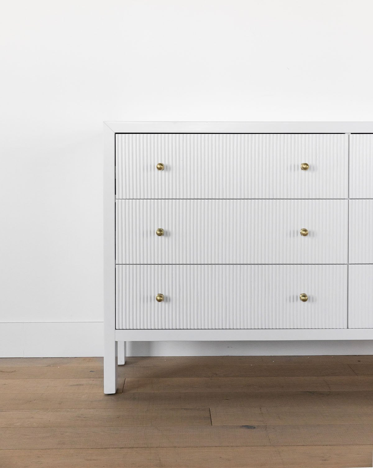 Enveloping your space with an airy feel, our Kendall Dresser is all about the details from the fluted drawer fronts to brass handle pulls. With innovative soft close drawers, this dresser is the epitome of function and beauty with its large storage design.