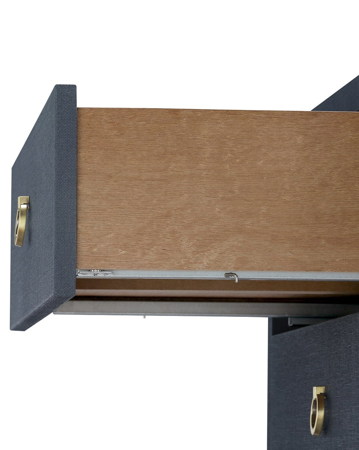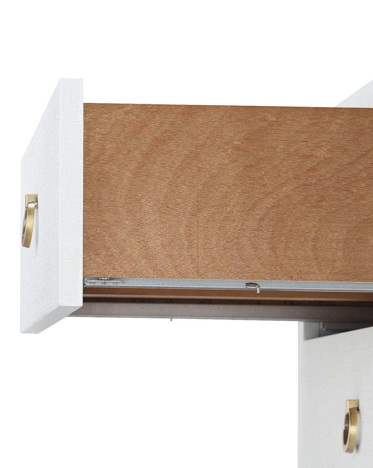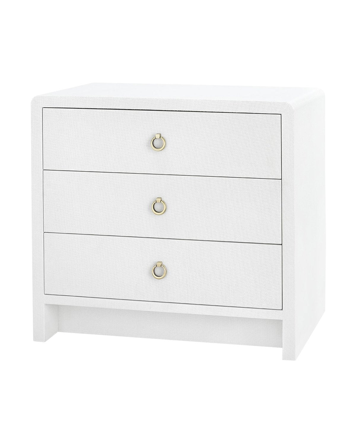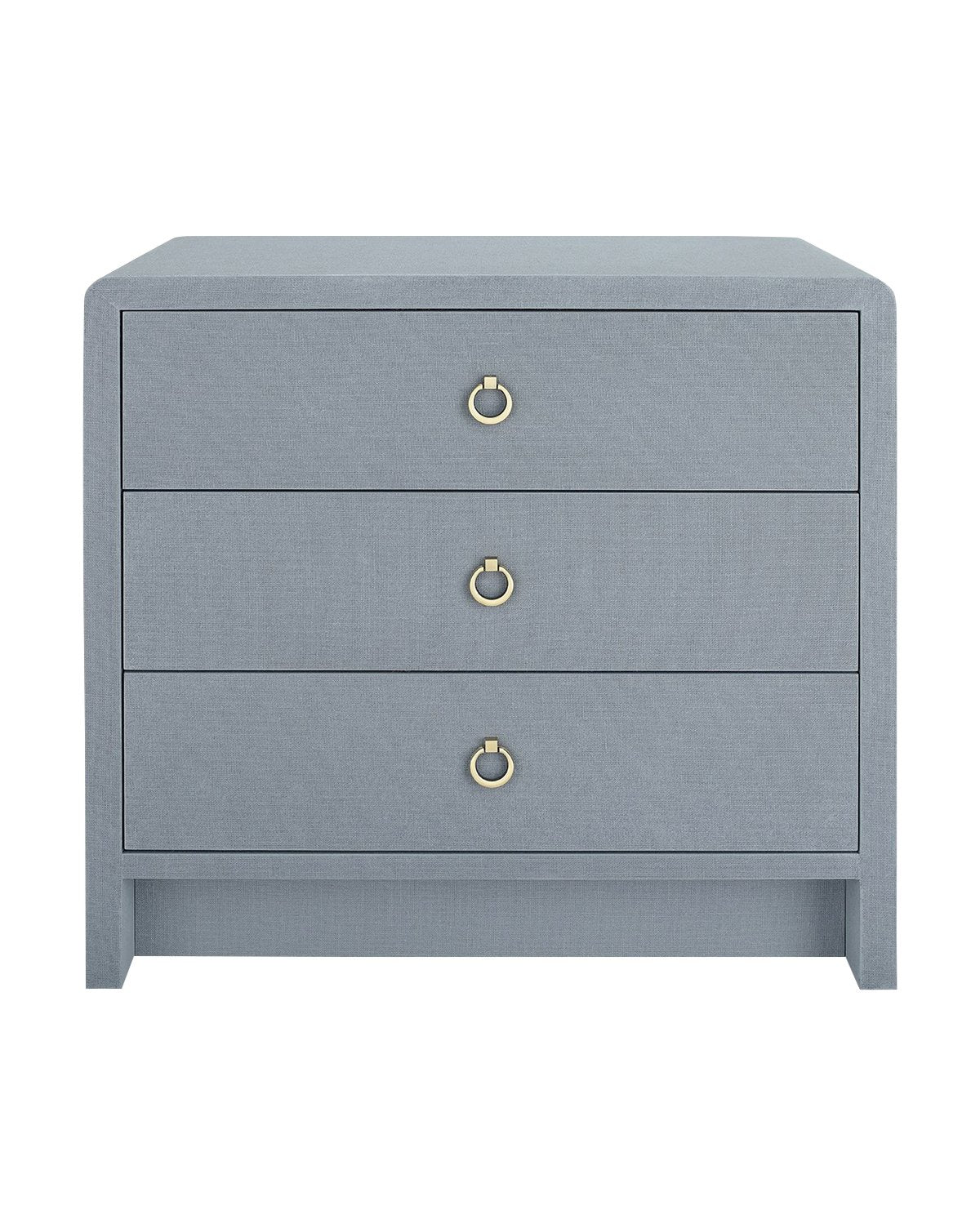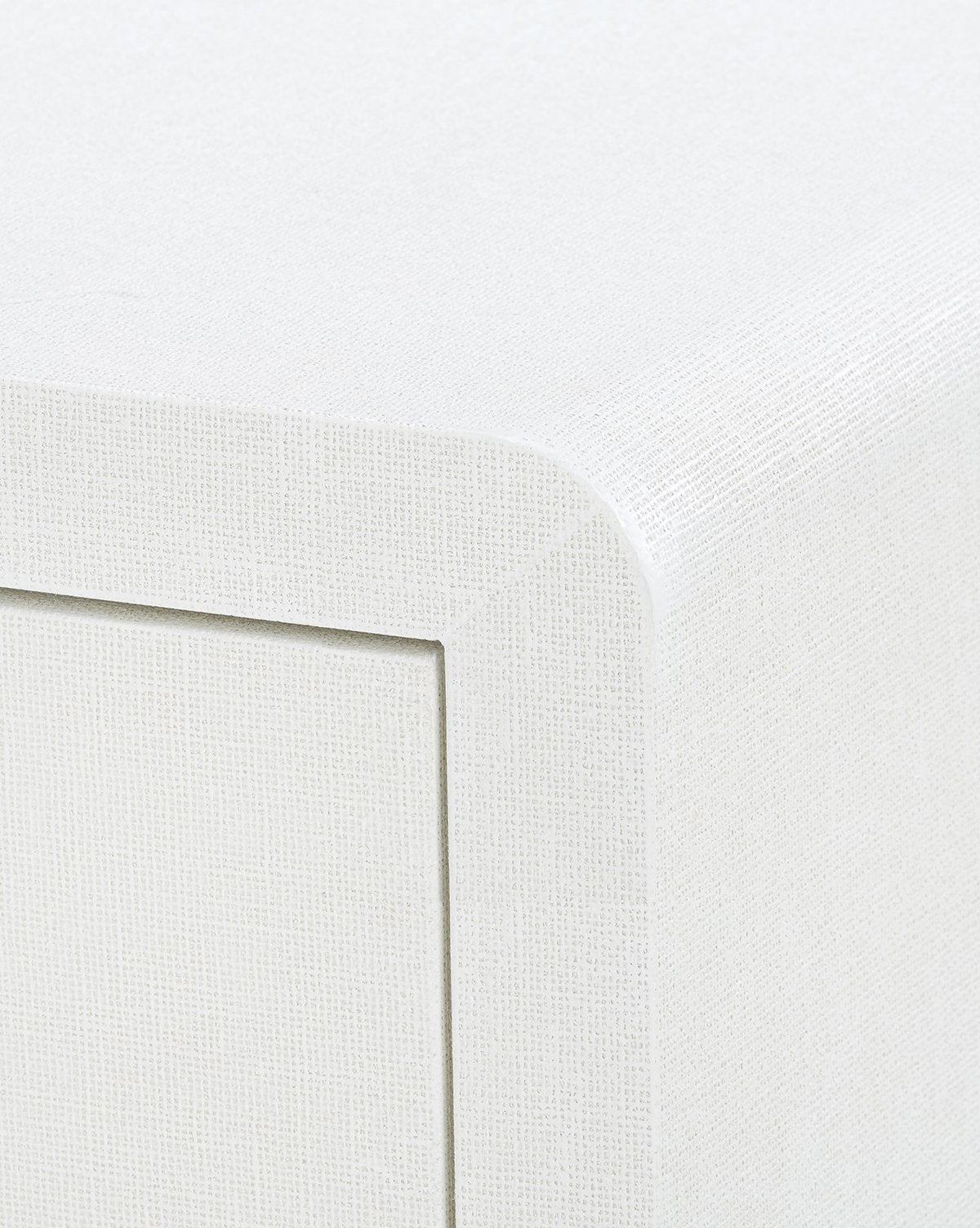 The Olivia Nightstand is a late mid-century take on classic modernism. Its unique design includes waterfall edges in a lacquered linen finish. With fitted drawers and an inset base, it adds form and dimension to your space in all three color options.