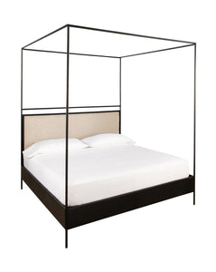 With a modern take on a classic design, our Sutherland Canopy Bed makes a grand statement in your bedroom. Featuring a sophisticated dark finish, its unique construction combines dimension with traditional style from the metal frame to the linen upholstered headboard.